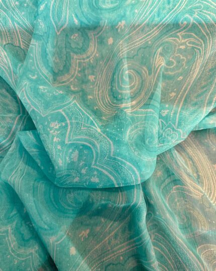 Perfektně ladí se zlatou, béžovou a černou barvou. Vhodná i ke krajce nebo jemnému saténu pro společenské modely.Šířka: 140 cm