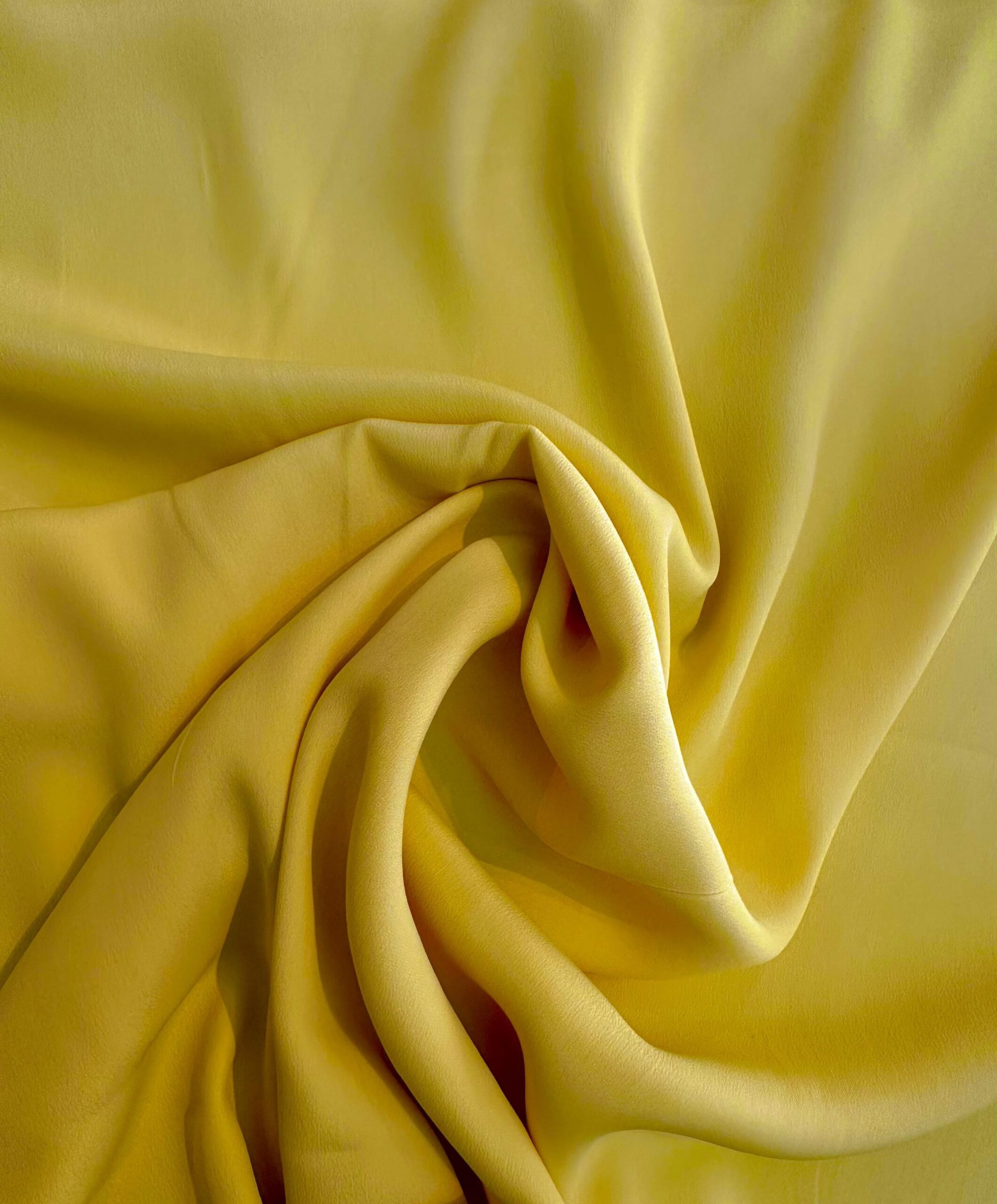 • Luxusní italská látka z acetátu a hedvábí ve žluté barvě, dostupná v Tessuti Butik. Ideální na šaty, halenky i elegantní letní modely.