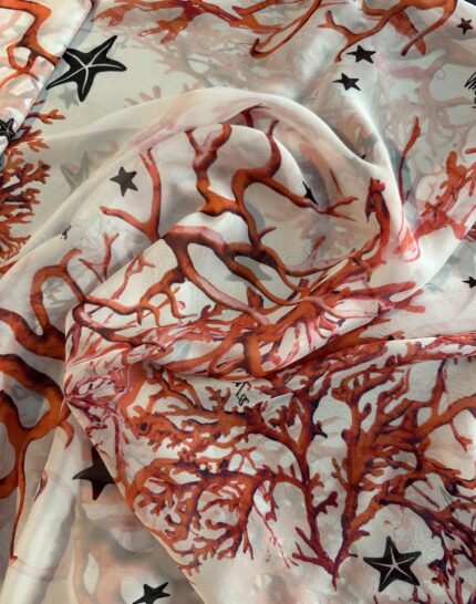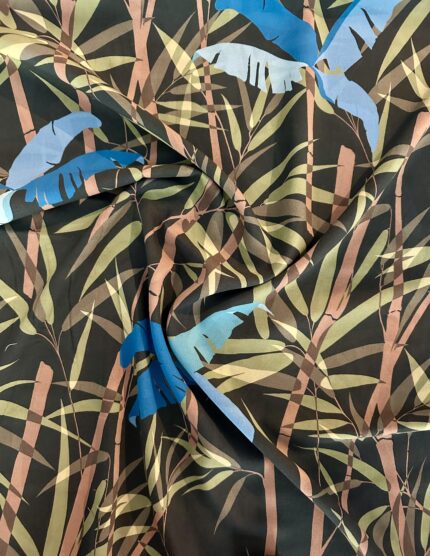 Exkluzivní italská látka Maria Spinelli z 100% viskózy s moderním listovým vzorem