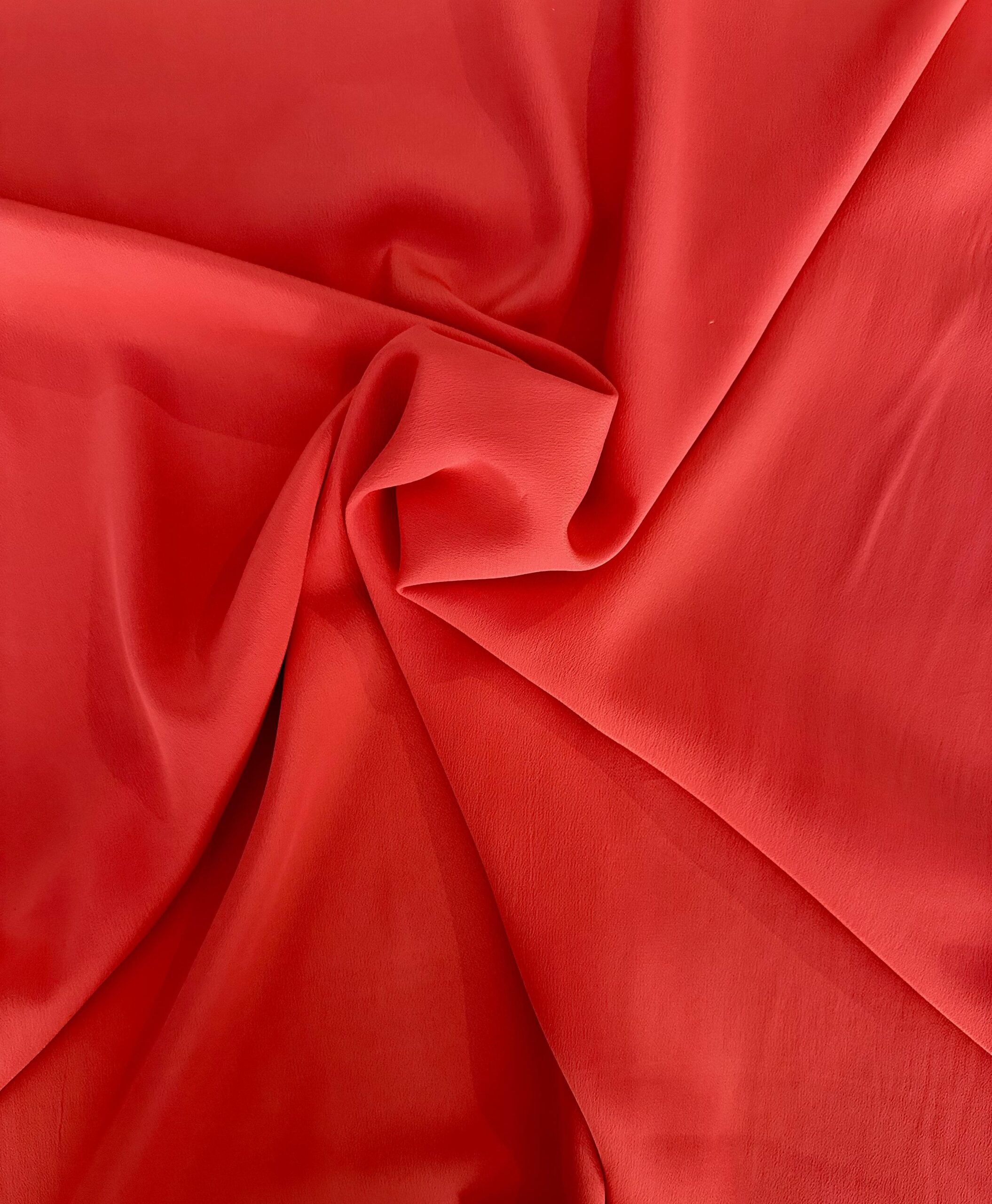 Italská látka – směs 60 % viskózy a 40 % acetátu v elegantní červené barvě. Jemná, splývavá a ideální na šaty, halenky a sukně.