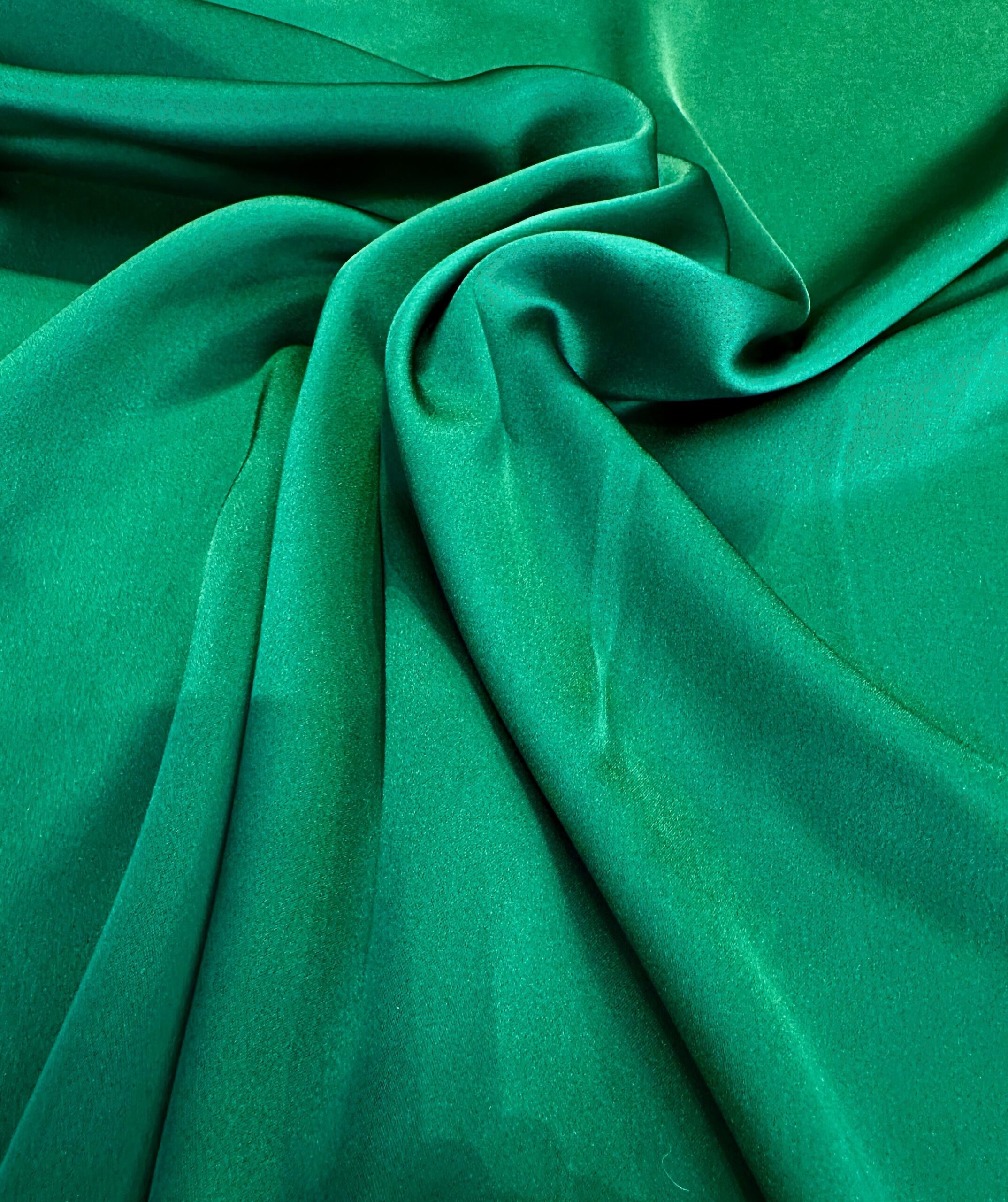 Italská látka – směs 60 % viskózy a 40 % acetátu ve zelené barvě. Jemná, splývavá a ideální na šaty, halenky a sukně.