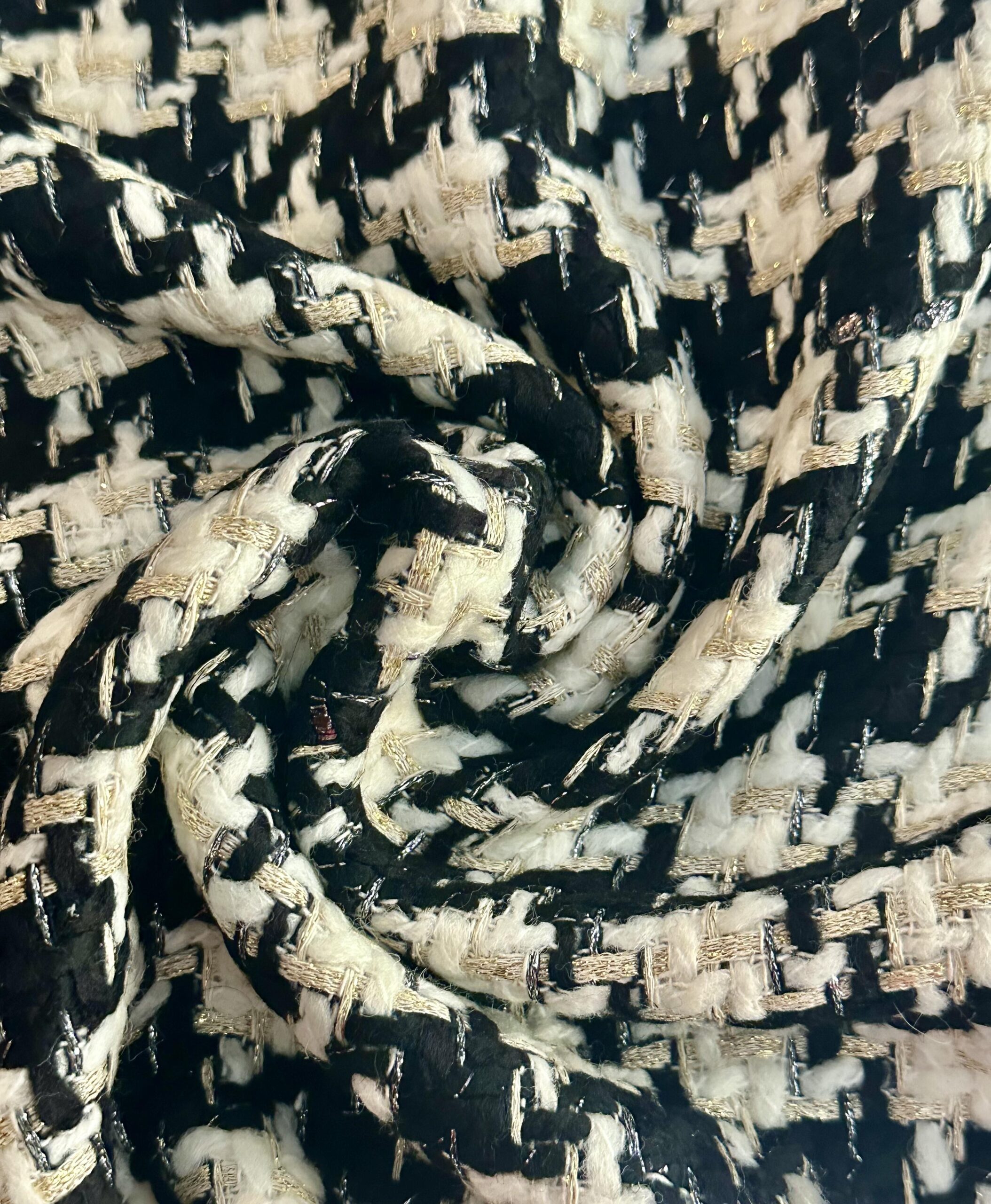 Italská kabátová látka Chanel – černobílá kostka s lurexem