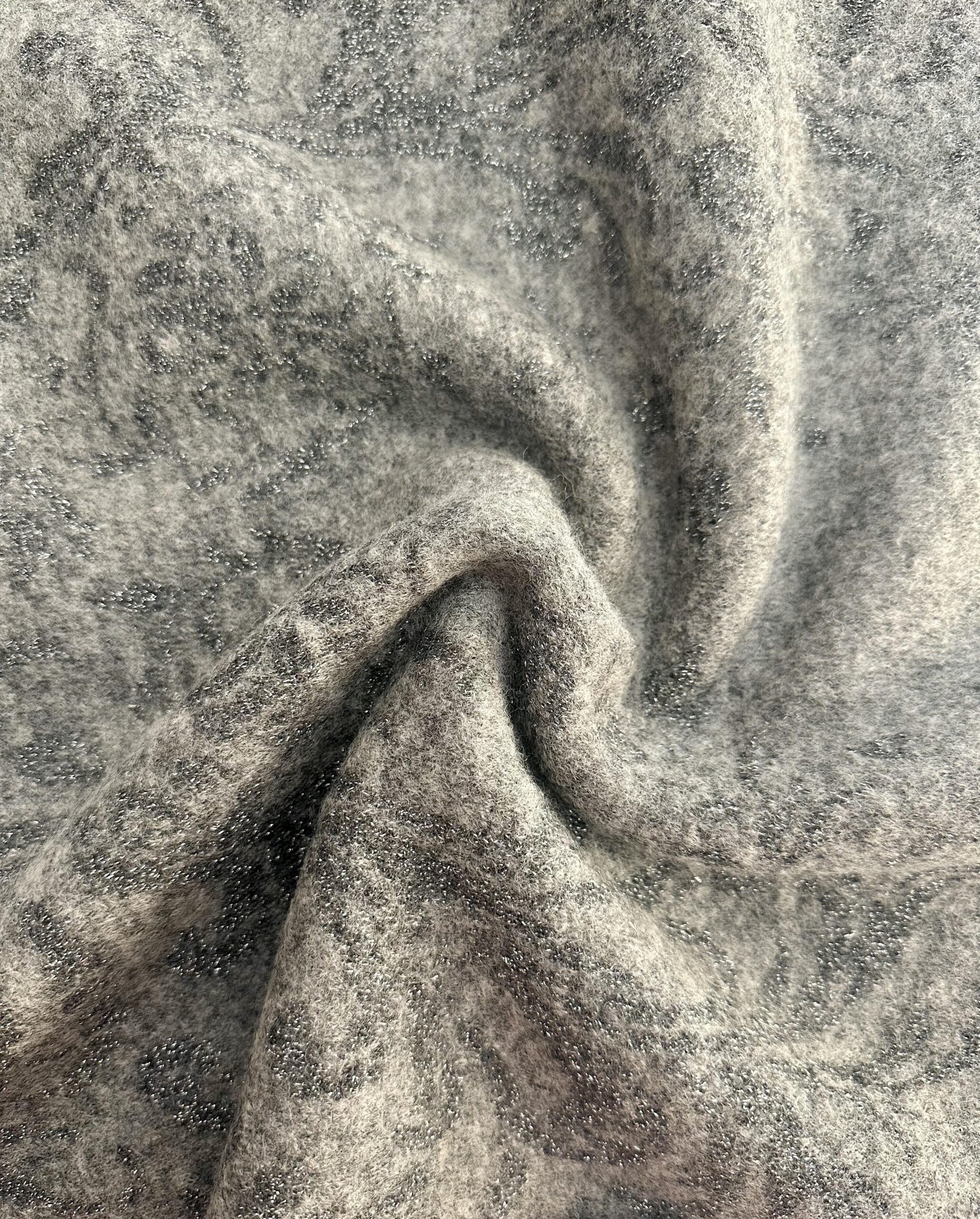 Italský kabátový úplet – šedý s ornamentálním lurexovým vzorem
