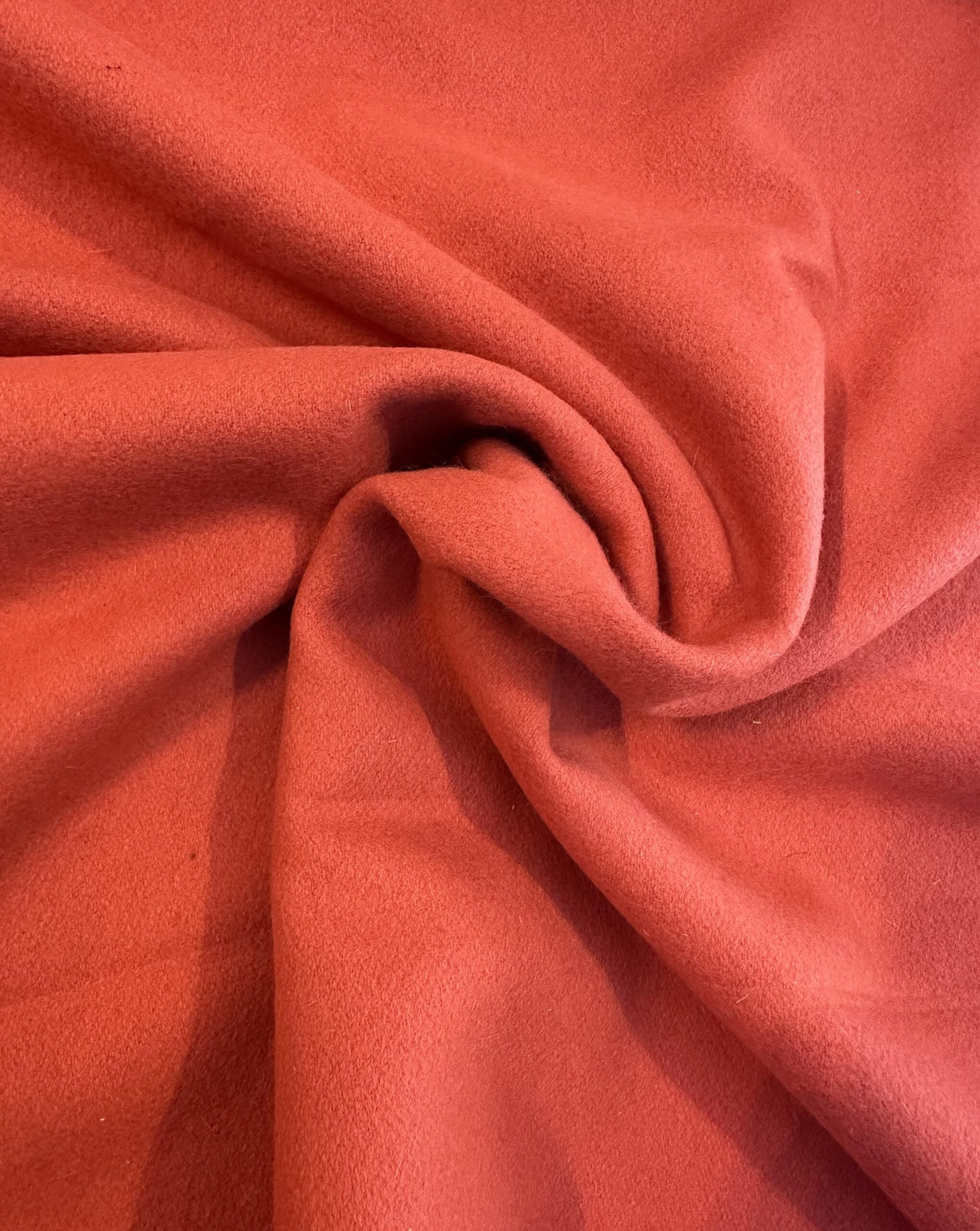 Luxusní italská látka na kabát ve složení 40 % vlna a 60 % kašmír. Mimořádně měkká, hřejivá a elegantní látka v sytě červeném odstínu, ideální pro exkluzivní kabáty, pláště, saka a luxusní módní doplňky.