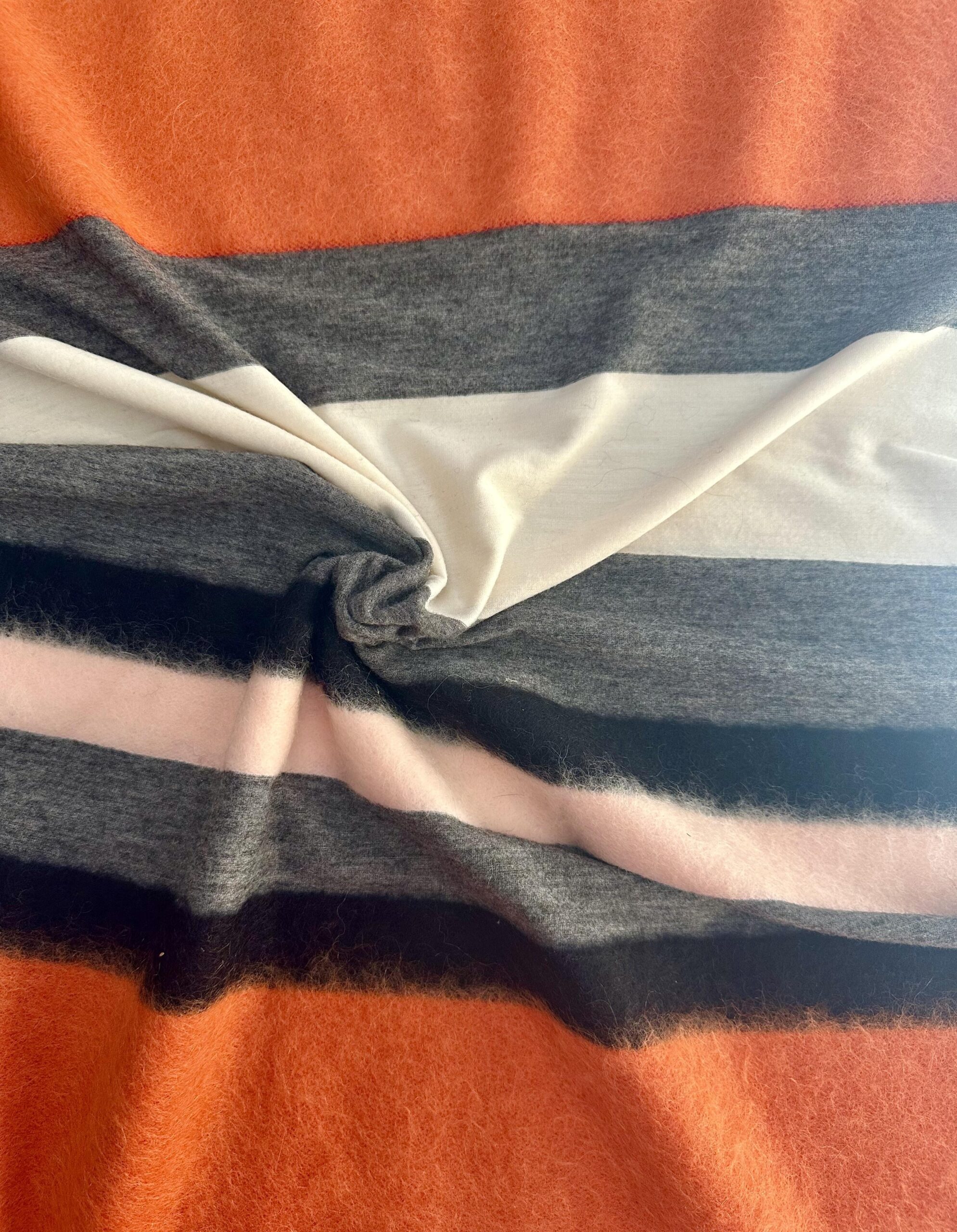 Italská kabátová látka v pruzích -oranžové, růžové, šedé, černé a krémové barvě