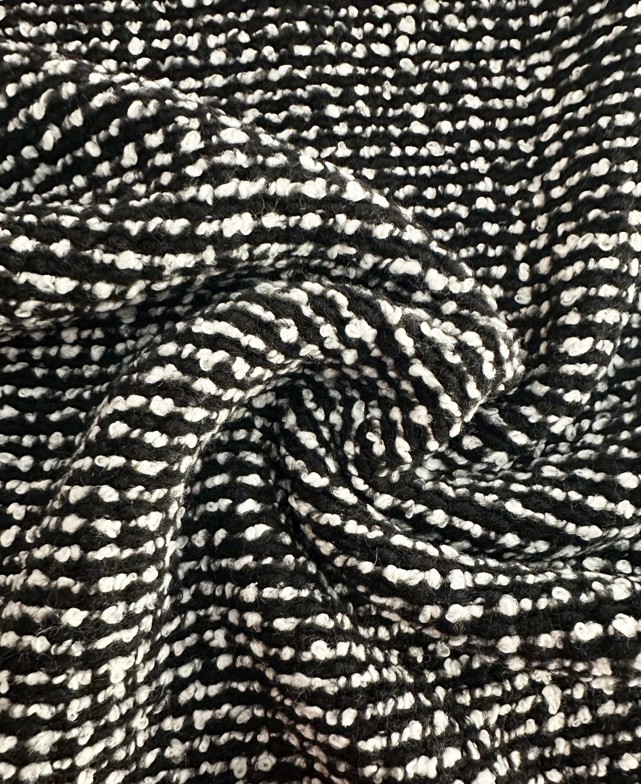 Pokud hledáte luxusní kabátové látky z Itálie v elegantních barvách a zajímavé struktuře, tato černo-bílá varianta je skvělou volbou.