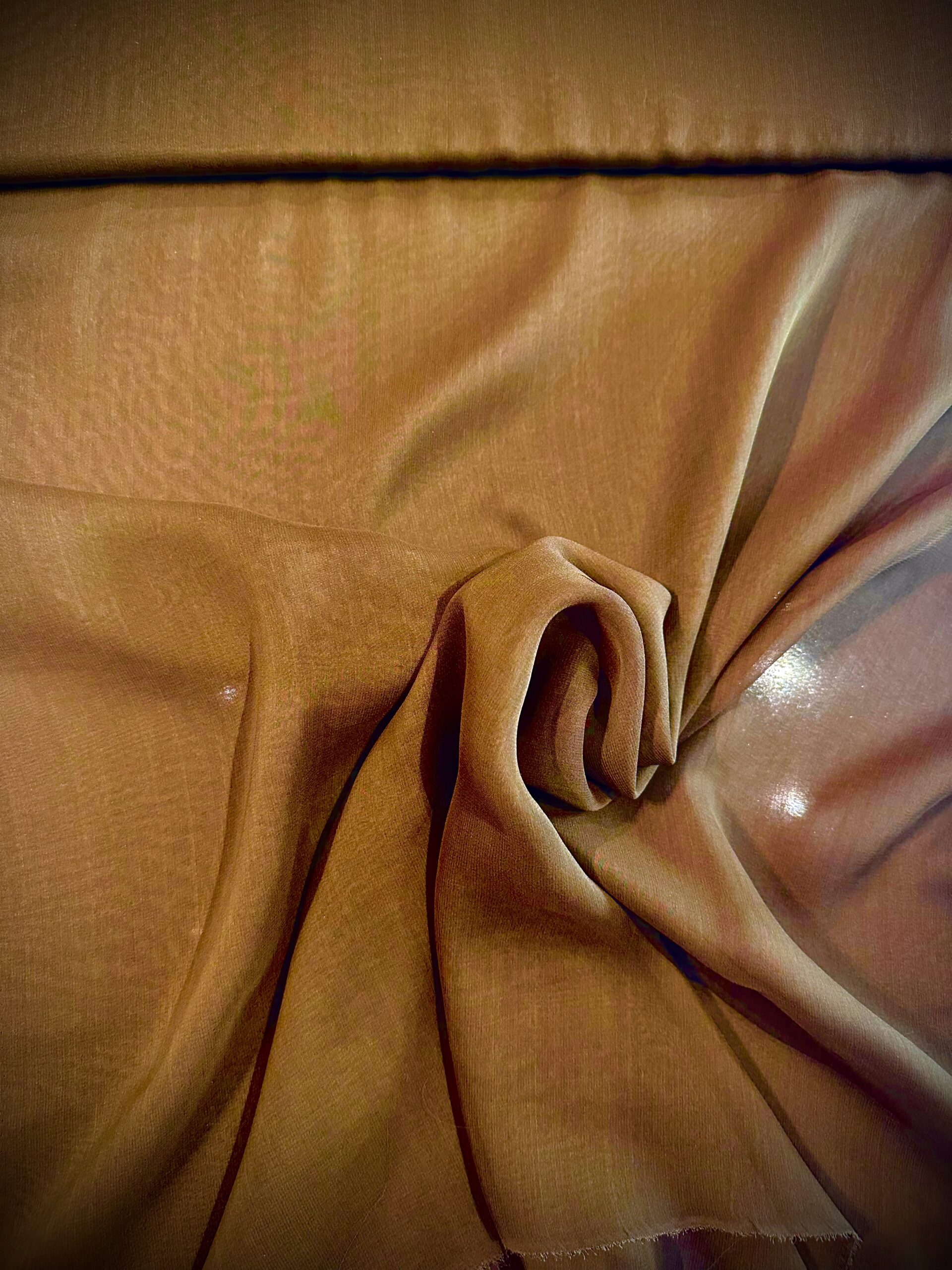 Jednobarevný hnědý odstín působí elegantně, nadčasově a univerzálně. Skvěle se hodí jak pro klasické, tak pro moderní krejčovské projekty. Tkanina je ideální na šití šatů, halenek, tunik, splývavých sukní, lehkých kalhot i šátků.