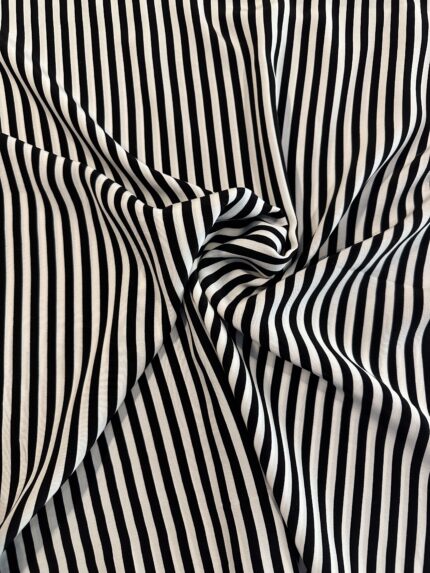 Italská viskózovo-hedvábná látka – černo-bílý pruhovaný vzor