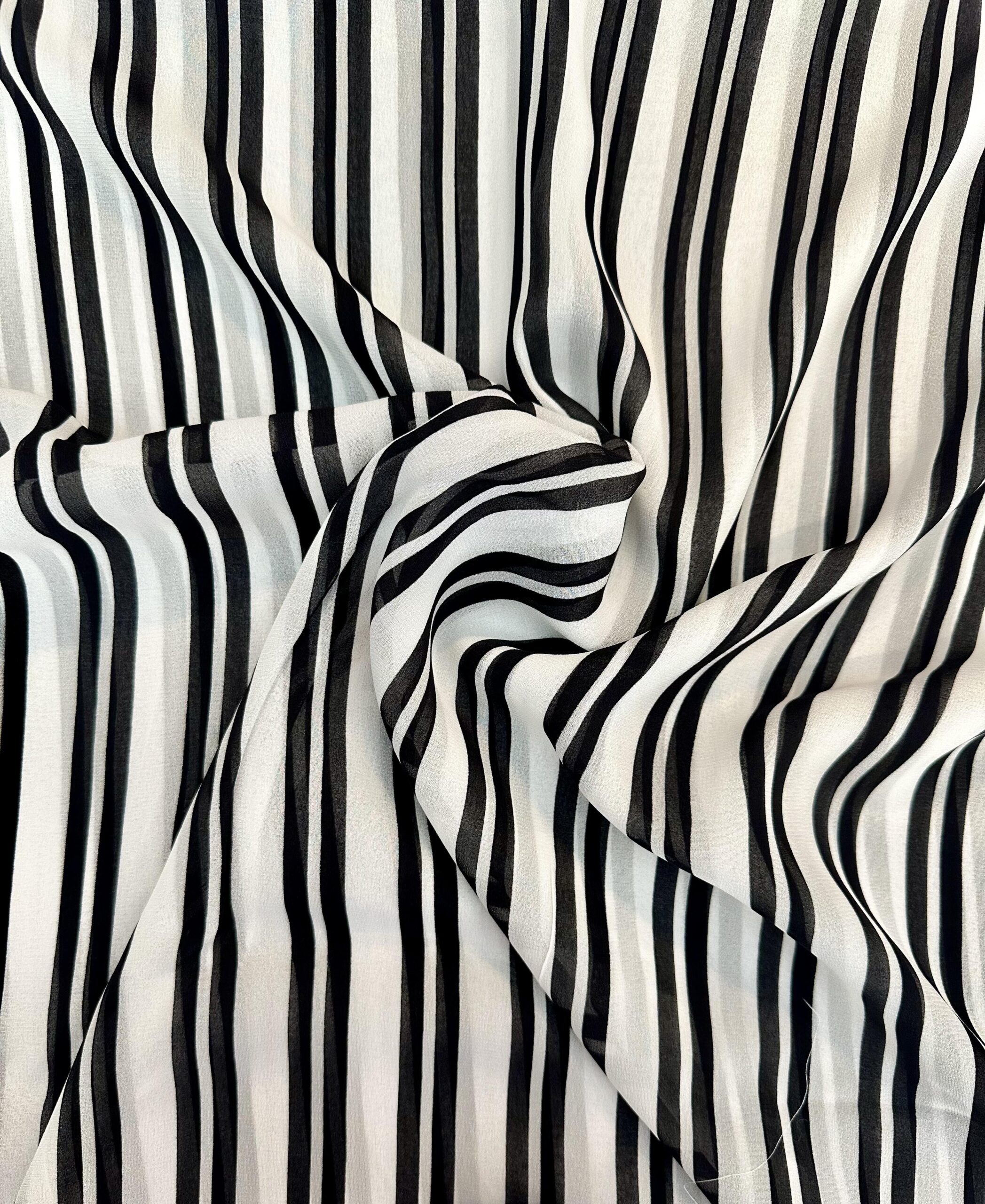 Italský hedvábný šifon – černo-bílý proužek