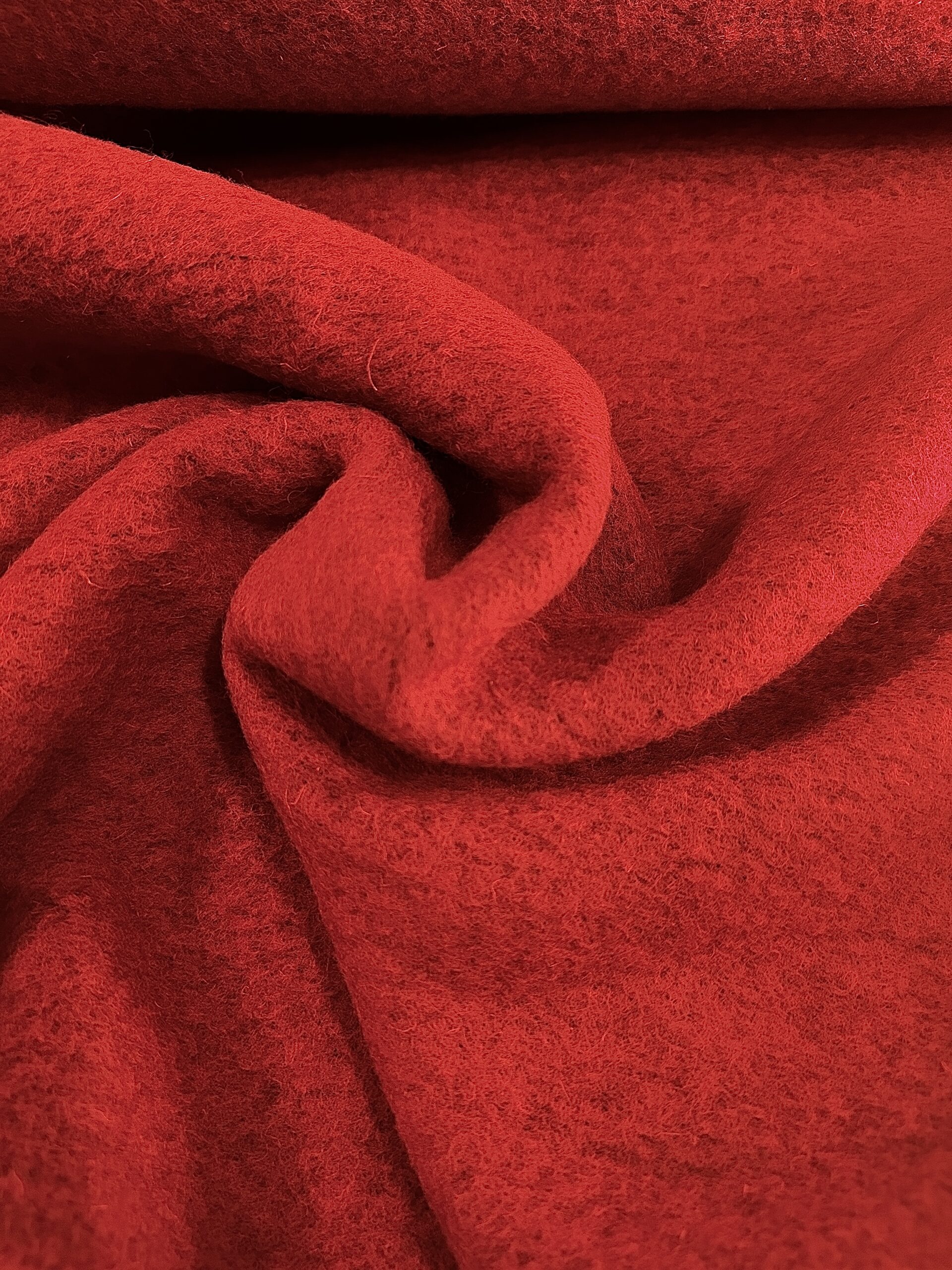 Typ: Italský kabátový úplet – tmavě červený s jemným počesaným povrchem