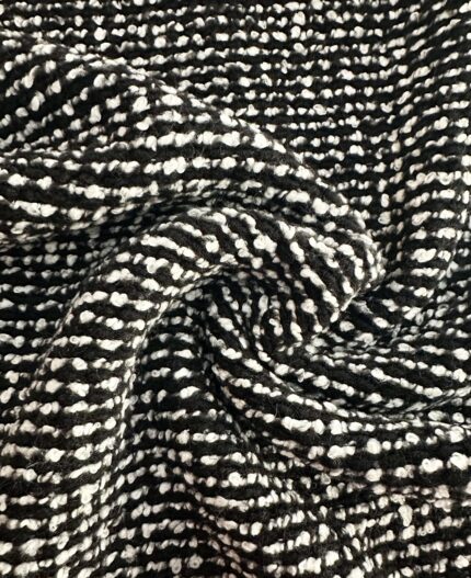 Italská kabátová látka – vlna s akrylem, černo-bílý plastický vzor