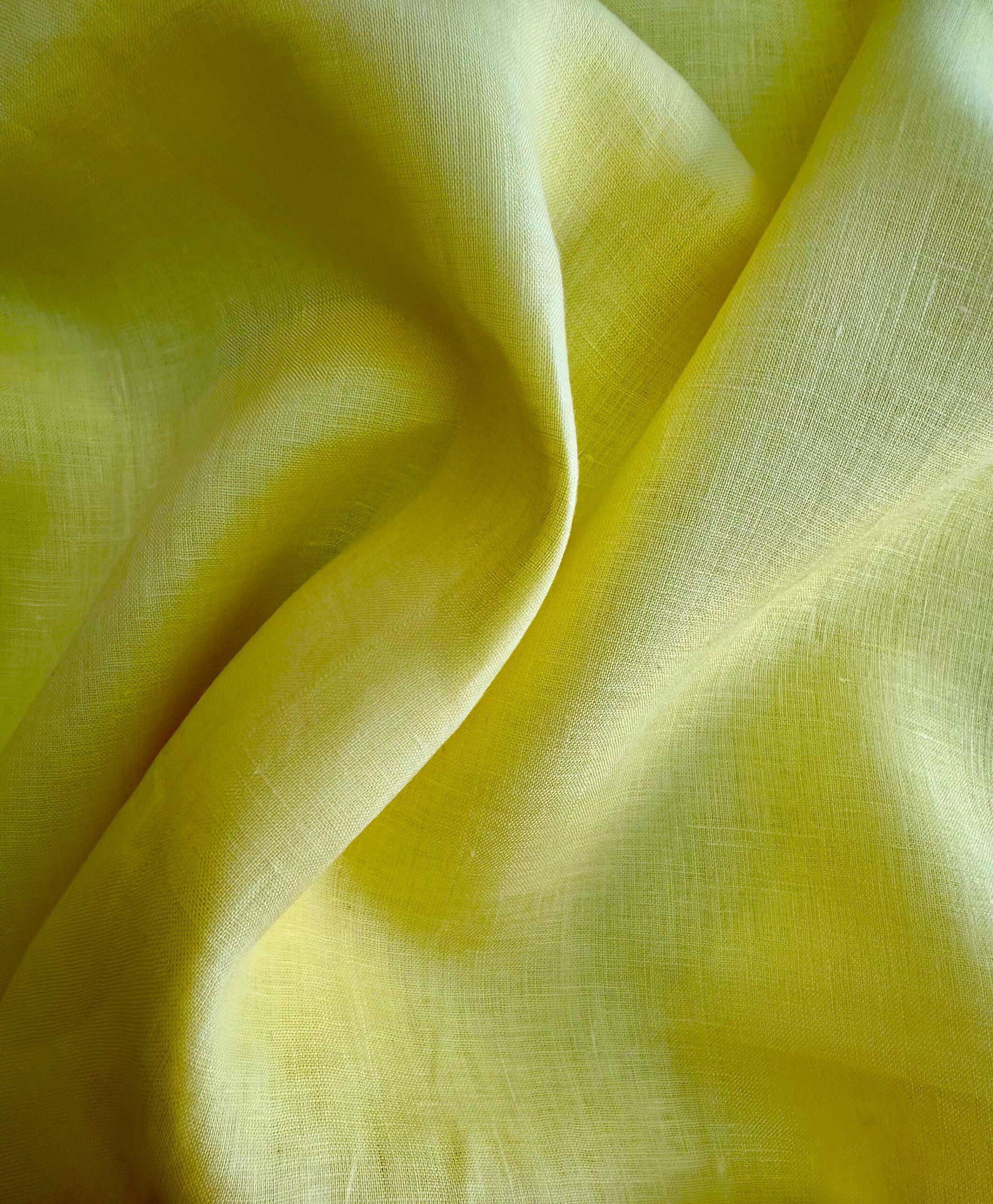 100% len v odstínu citrónová svěžest. Lehký, prodyšný a ideální pro letní šití i bytový textil.