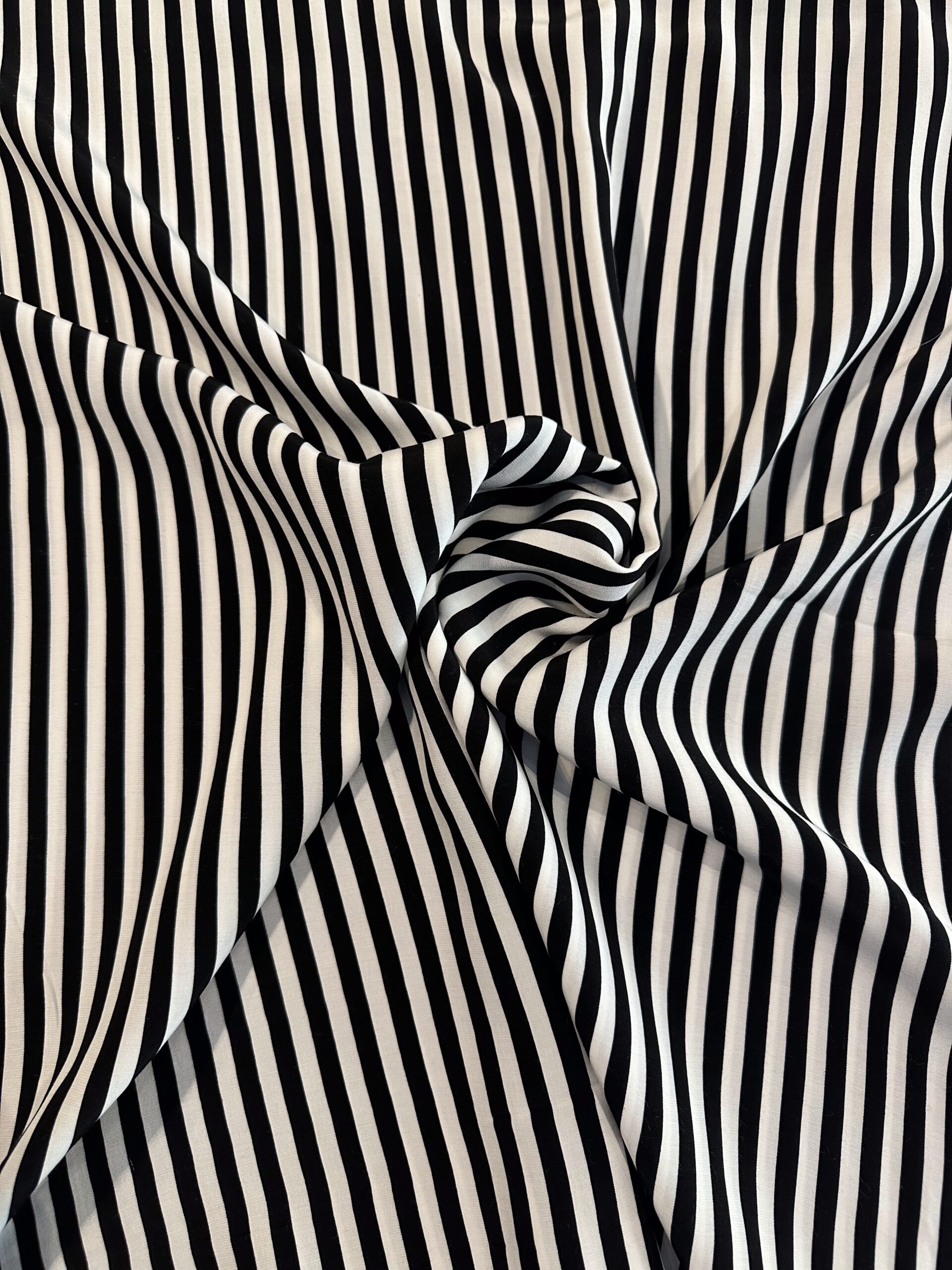 Italská viskózová látka – lehká a splývavá – černo-bílý proužek