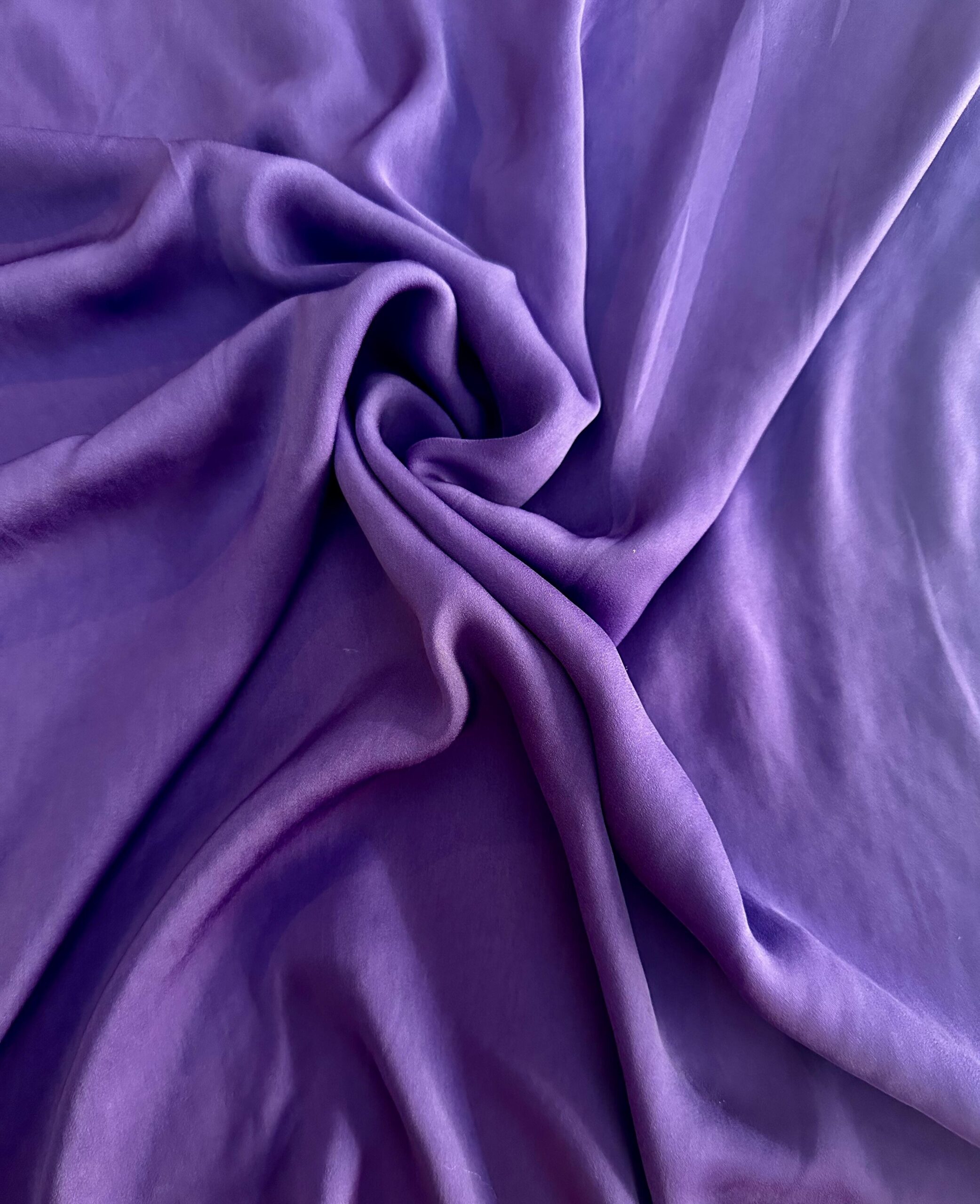 Italský krep polyester ve fialové barvě, 100 % polyester, šíře 140 cm. Ideální na elegantní oděvy – šaty, halenky, sukně i kalhoty.
