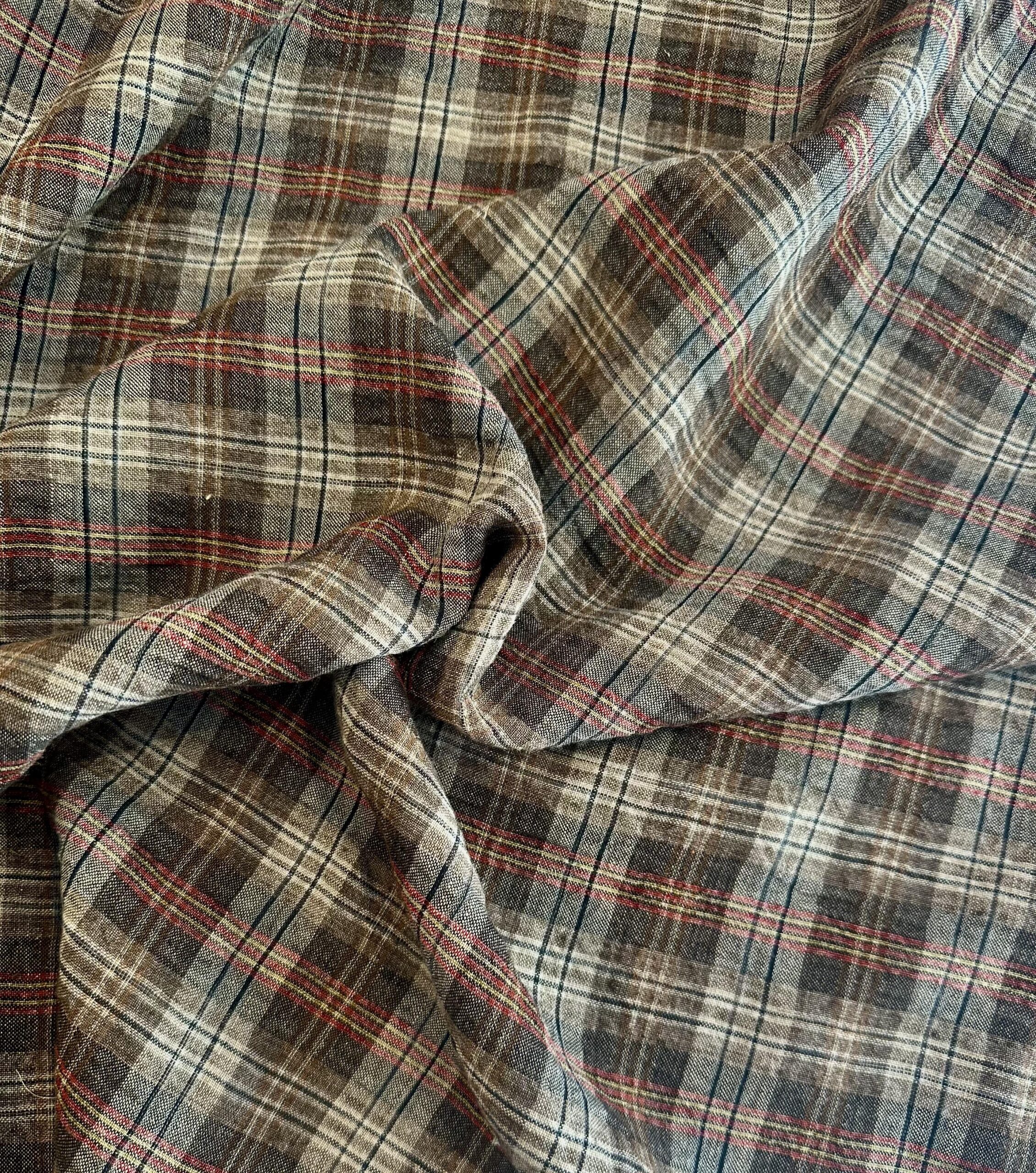 Lněná látka v klasickém kostkovaném vzoru v odstínech hnědé, béžové, červené a tmavě modré. 100% len je prodyšný, přírodní materiál s vysokou pevností, který zajišťuje pohodlí a dlouhou životnost oděvů. Díky typickému rustikálnímu vzhledu a decentní barevné kombinaci je ideální pro šití košil, sukní, šatů, kalhot nebo lehkých sak.