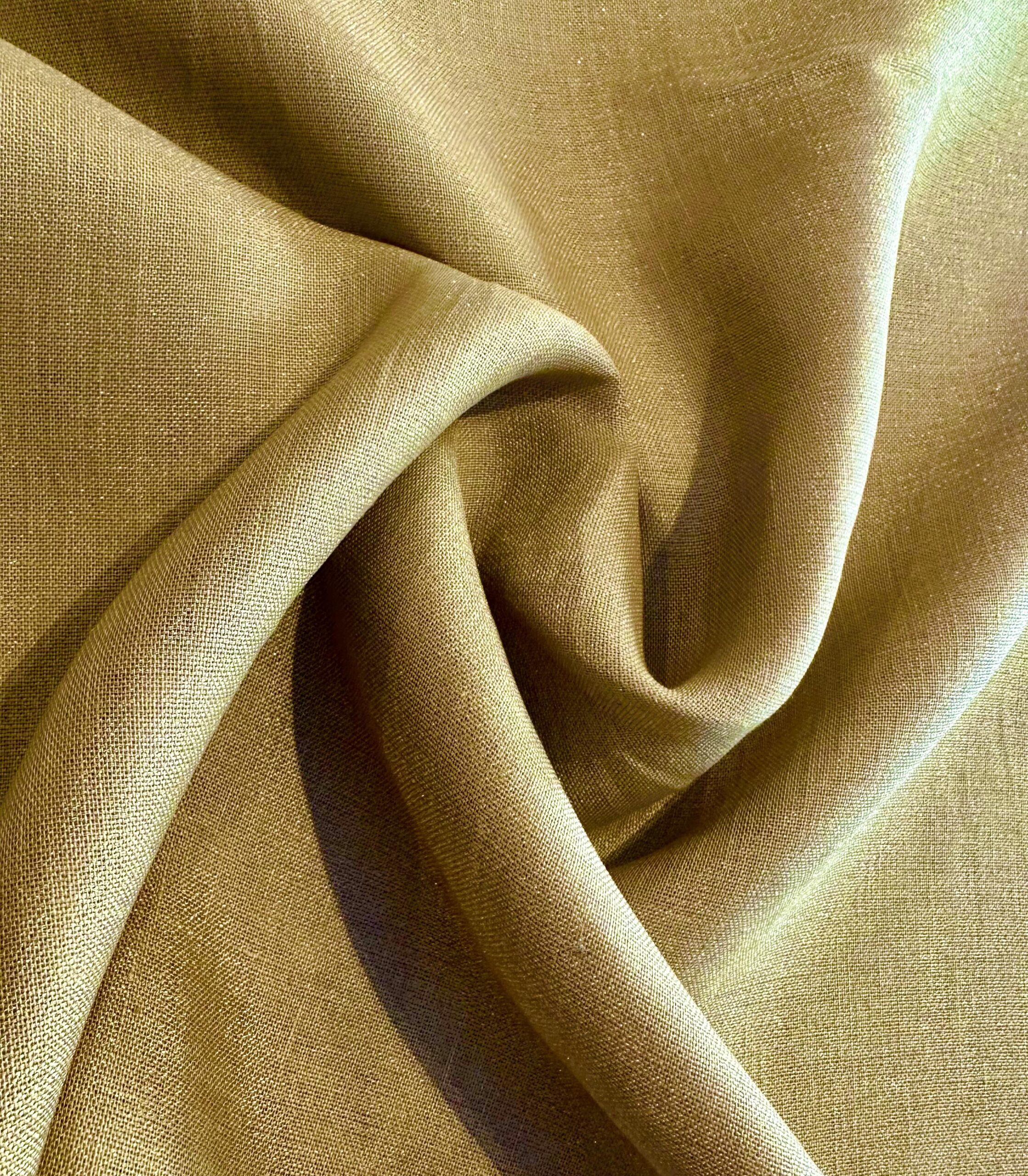 Lněná tkanina se zlatou nití z nabídky Tessuti Butik přináší spojení přírodního materiálu a elegantního lesku. Základ tvoří pevný a prodyšný 100% len, který je doplněn jemným zlatým vláknem. Díky tomu působí látka luxusně a originálně, ale zároveň si zachovává všechny vlastnosti lnu – odolnost, vzdušnost a přirozený vzhled.